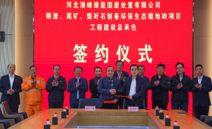 91暗网 成功签约河北清峰绿能固废处置 有限公司钢渣、尾矿、煤矸石制备环保生态墙地砖(一期)总承包合同并举行开工仪式