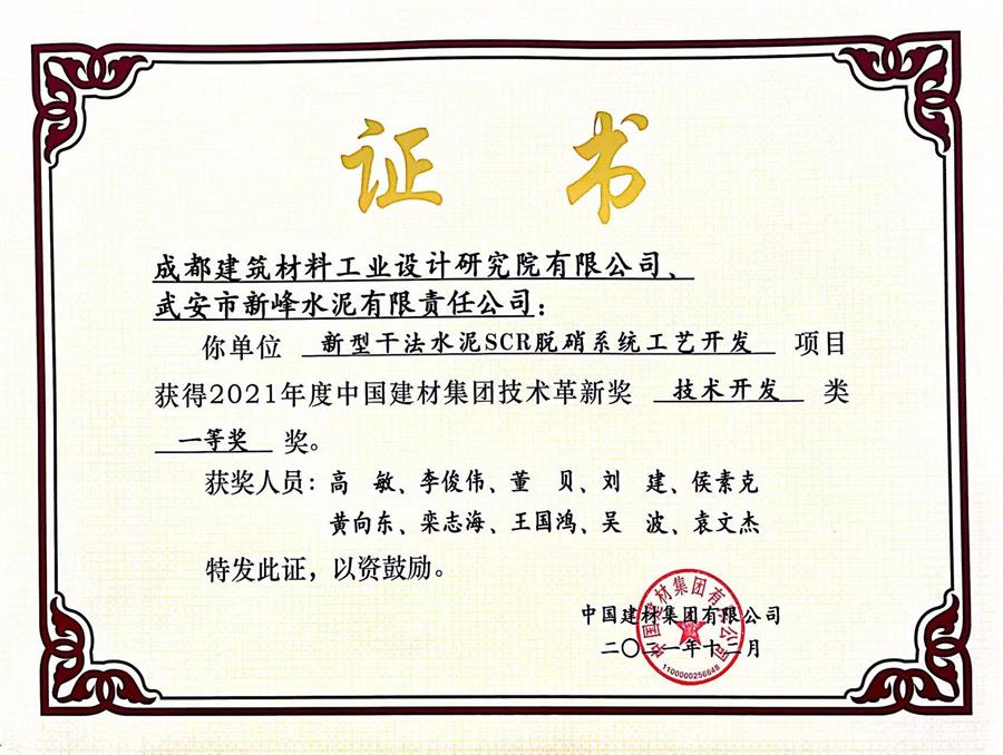 First Prize of 2021 CNBM Innovation Award