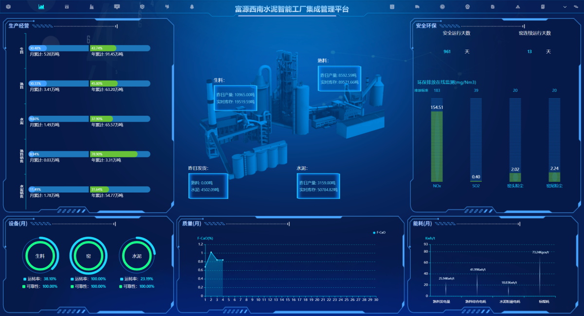 At present, the company's digital intelligence department is continuously improving in the intelligent and unmanned cement manufacturing and digital production control by combining its own technological advantages. Through the construction of the Hongta Dianxi production control system, Guangxi Jinli unmanned cement grinding system, and Yunnan Fuyuan fully intelligent production line system, it has the ability to build intelligent cement production lines.