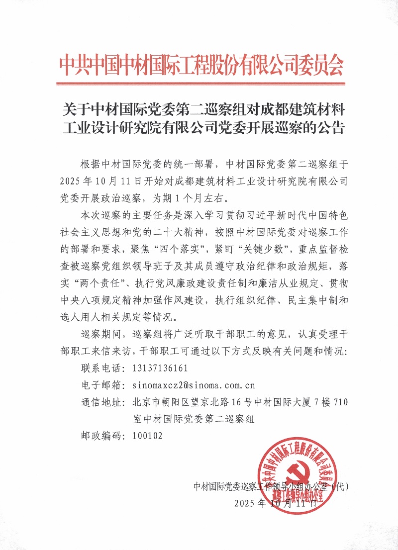 关于中材国际党委第二巡察组对版权:91暗网-暗网网址导航 党委开展巡察的公告